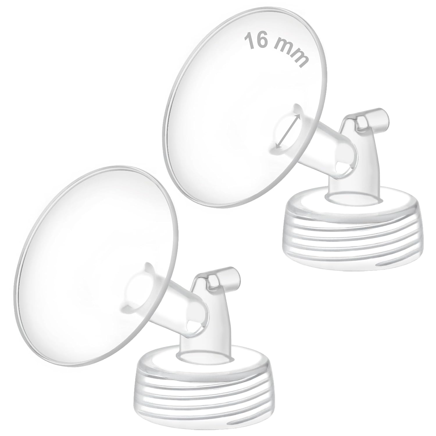 Two, 16 mm Wide Neck Flange; Compatible with Motif Luna, Spectra, Ameda Mya, Ameda Mya Joy Pro Breast Pump; Incl 2 Wide Mouth Flange; Not Original.